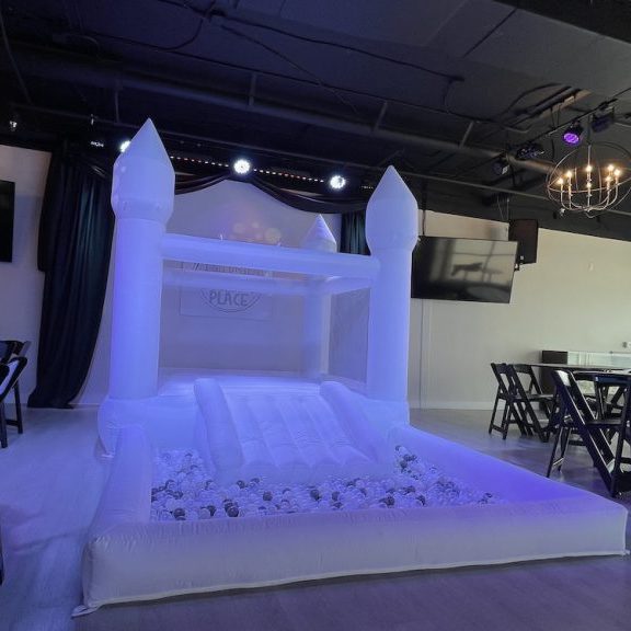Bring big fun to your celebration with our large all-white bounce house, perfectly sized to fit inside The Party Place! Designed for kids only, this elegant inflatable adds excitement and energy while maintaining a clean, modern look that complements any theme.