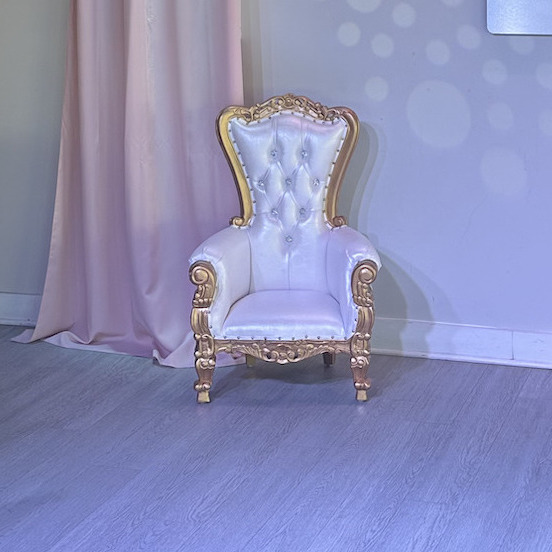 Give your little princess the royal treatment with our small white throne chair — a charming centerpiece fit for any celebration. This elegant seat provides the perfect spot for your guest of honor to enjoy the spotlight, take photos, and feel truly special on their big day.